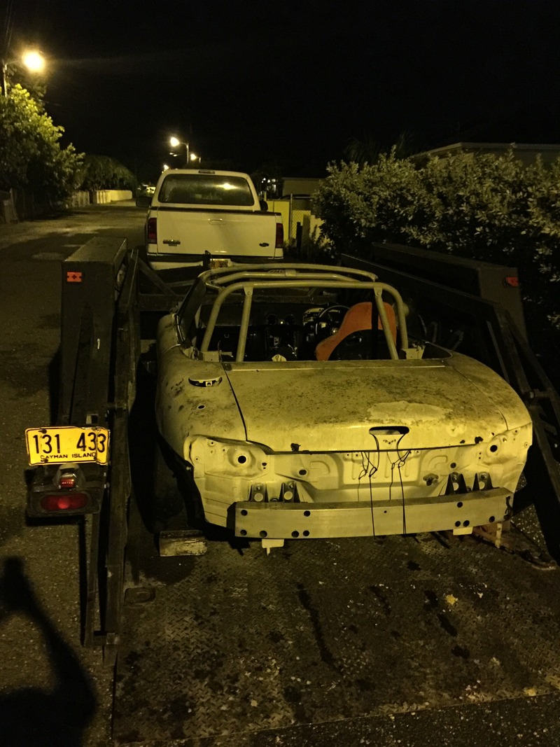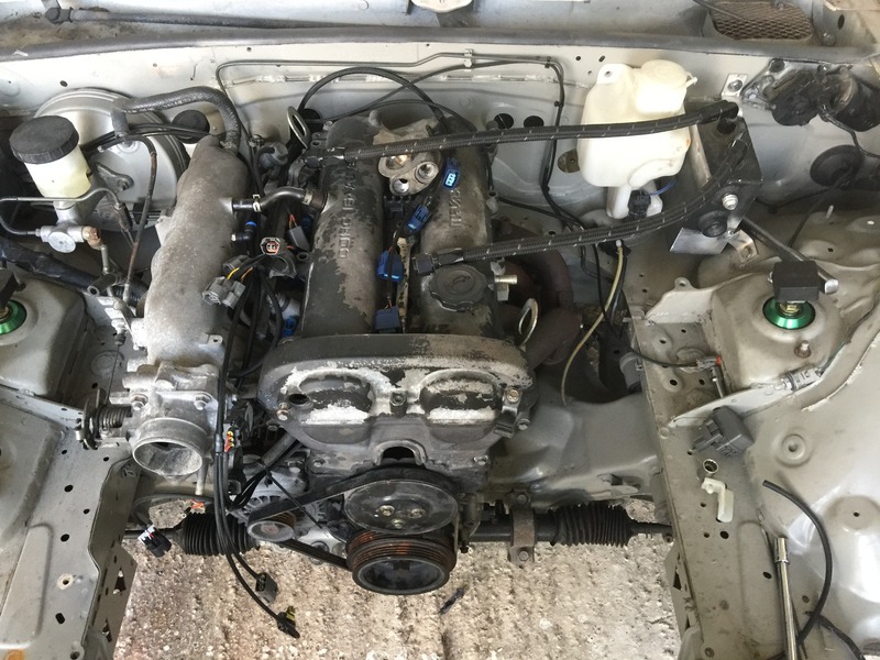 So this evening my buddy with the ls1 rx7 was towing his car to the body shop. I asked if my car could hang out at his house while it was there since he has a proper covered area.