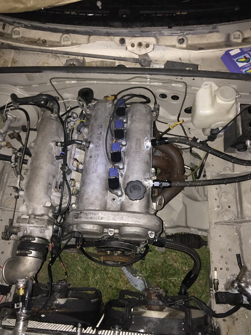 Well it rolls over but it doesn't fire. I need to tone out the wiring to make sure the cam and crank signals are going to the right place and then figure out how to log them on start up. The TPS needs adjusting also but it started to rain.