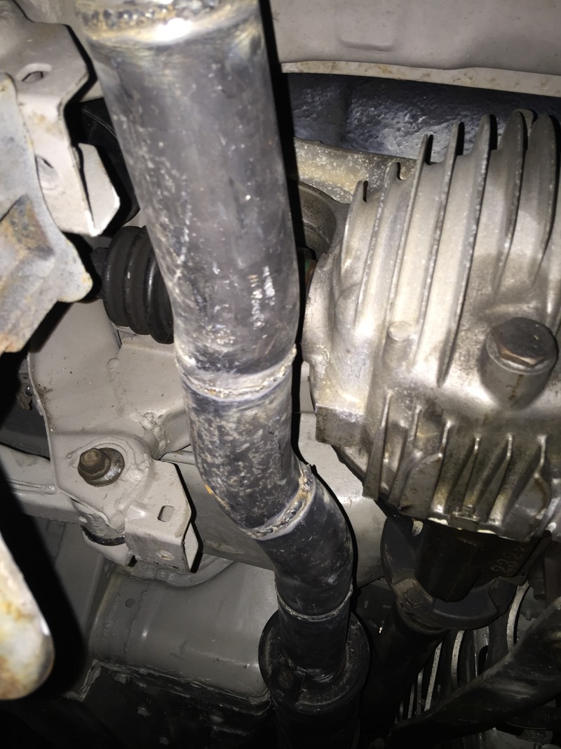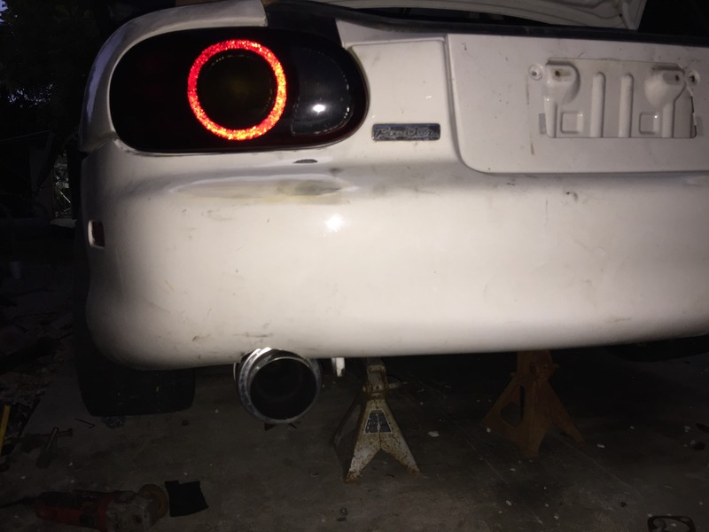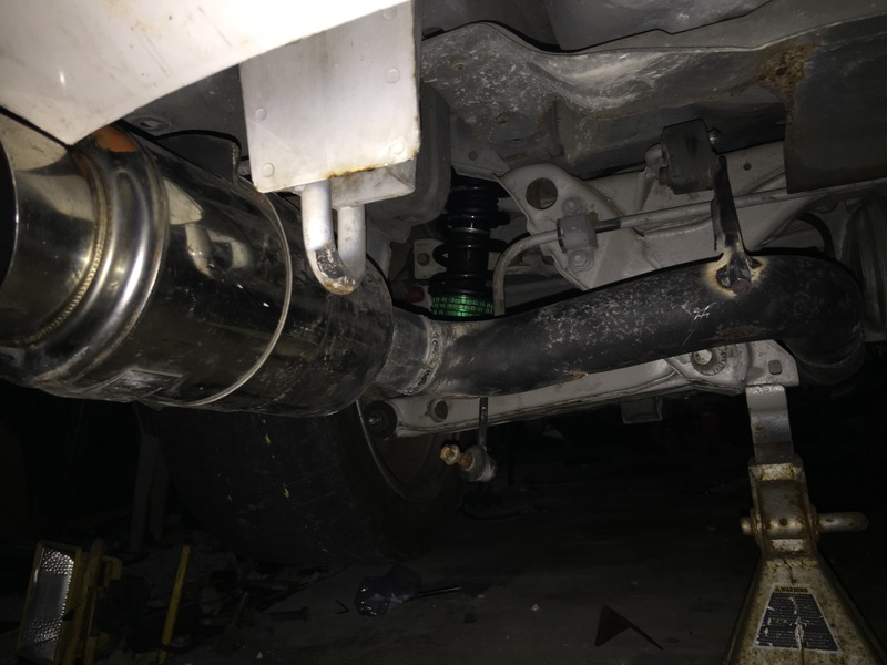 Got the exhaust completed and tucked nicely in there. It is just above the lowest part of the rear subframe so it should clear the Autoexe rear brace when it get's here. 2 3/8" piping, 2 large resonators in the mid pipe and a small muffler at the rear. I didn't extend it to the stock exit as I didn't have enough material