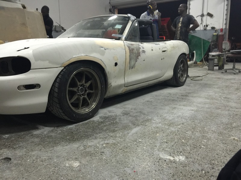 My brother and I managed to get some of the sanding done but it's looking a little out of our league so the car will be going back to the body shop on saturday to have everything done.