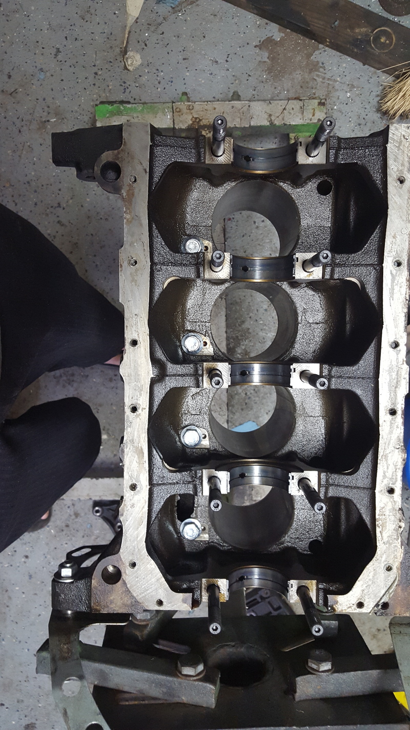 Cleaned, oil squirters blocked and King bearings in place. Main bearing clearances ended up being 1 & 3 - 0.0020 where as 2, 4 & 5 were 0.0015. The rods all came between the 0.0015 & 0.0020 plastigauge marks so on the loose end of OEM
