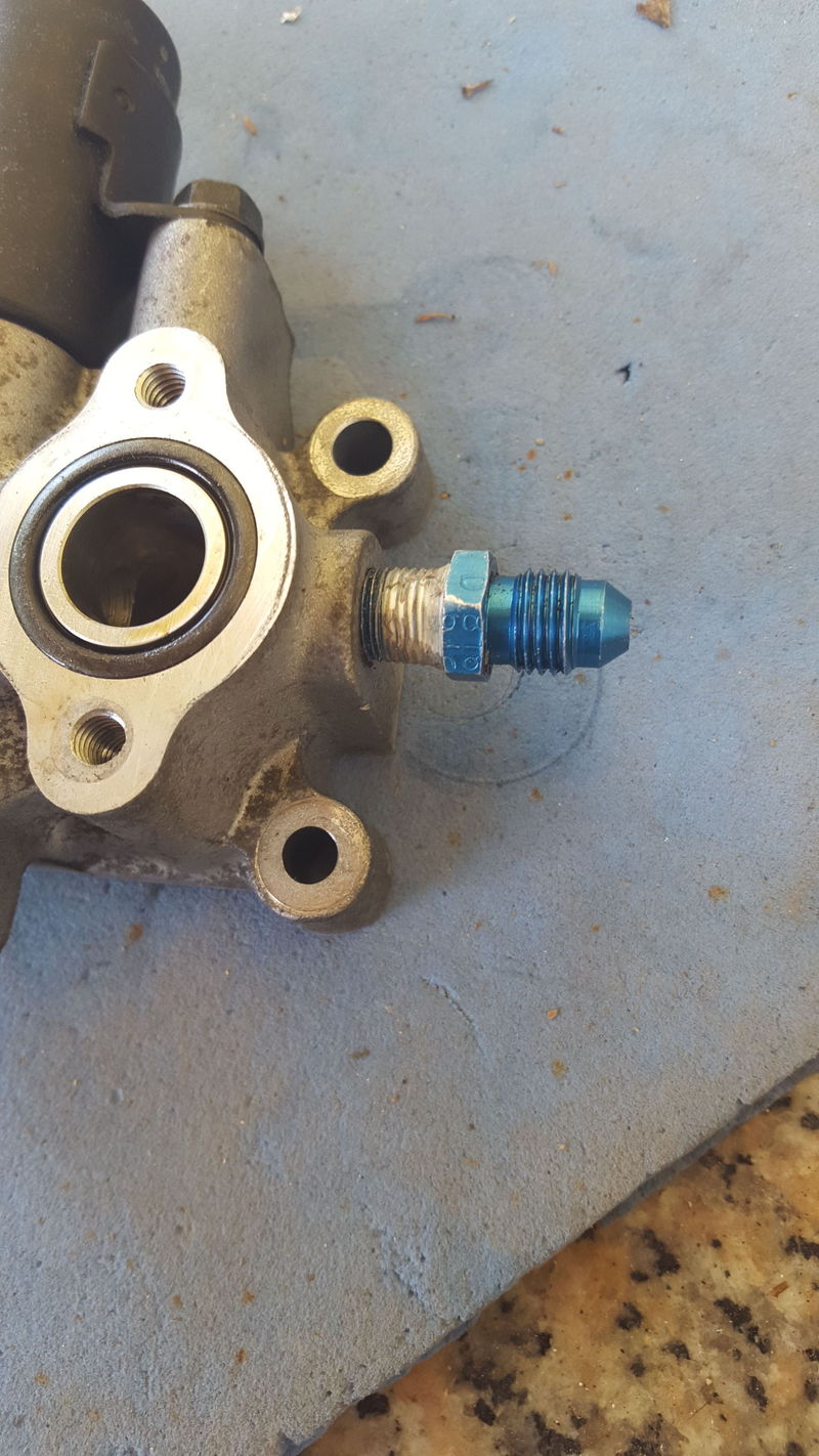 6AN bung on the end of the rail. I'm trying to decide if I'm going to run braided 6 from the tank or just reuse the stock feed line.