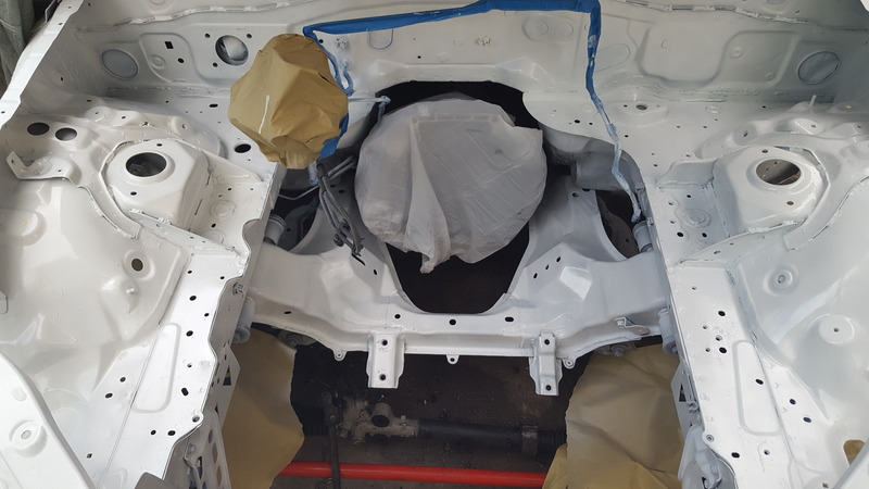 Repainting the bay tomorrow and dropping the engine and 6 speed in next weekend. The hard top, bumper and small oem skirts are scheduled for paint next weekend as well.
