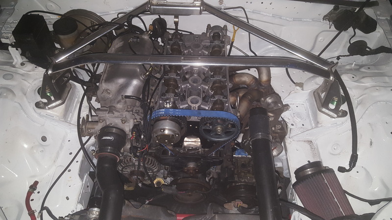 Also kinda mocked the manifold in place on the 1.6 to check on the frame rail clearance