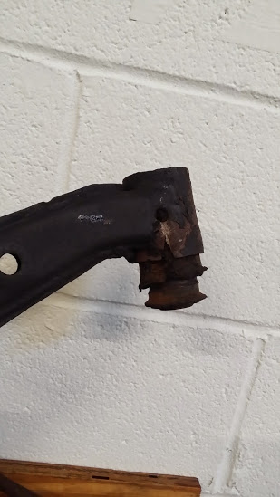 Now I've got to replace that control arm. Actually, I'm seriously considering replacing both sides because I've had to "bastardize" both sides way back when because the (so-called) captured nuts for the lower shock mounts broke loose and so I had to cut out a notch so that I could get a wrench in there to hold them to get the shock-mount bolt out. That happened probably 5-6 years ago and I've been running the rear LCA's ever since (again...more rust-invasion).