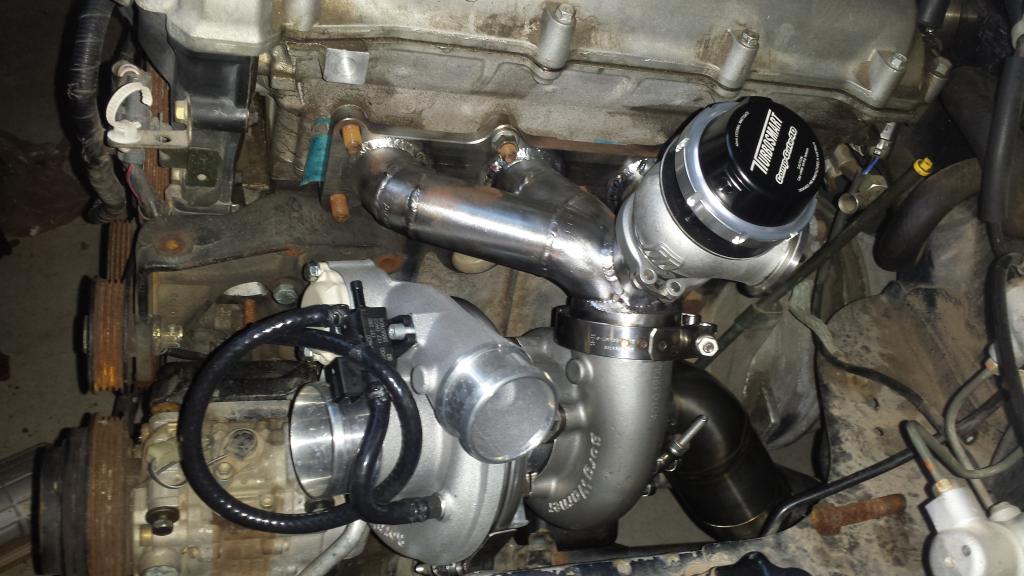 P/S has been deleted which allows the turbo to be mounted further forward to allow room for the EWG plumbing back to the downpipe.