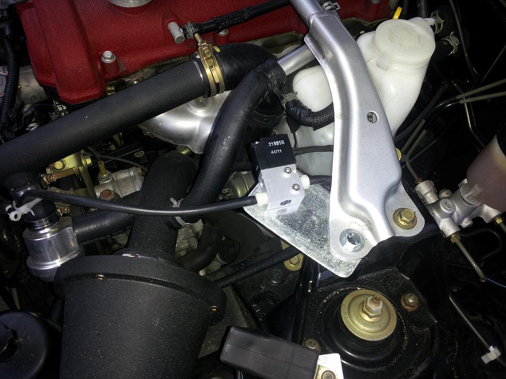 I had some free time today because my federally funded employer gave us the day off for Veteran's Day. My MBC was not easy to dial in correctly when I was tuning full throttle pulls and the EBC is all around better so I decided to install it. I picked up a light switch block-off plate from Home Depot for like 55 cents and made a quick bracket for my GM boost solenoid. It isn't pretty right now but it works and I will cut off the excess and spray paint it black later.