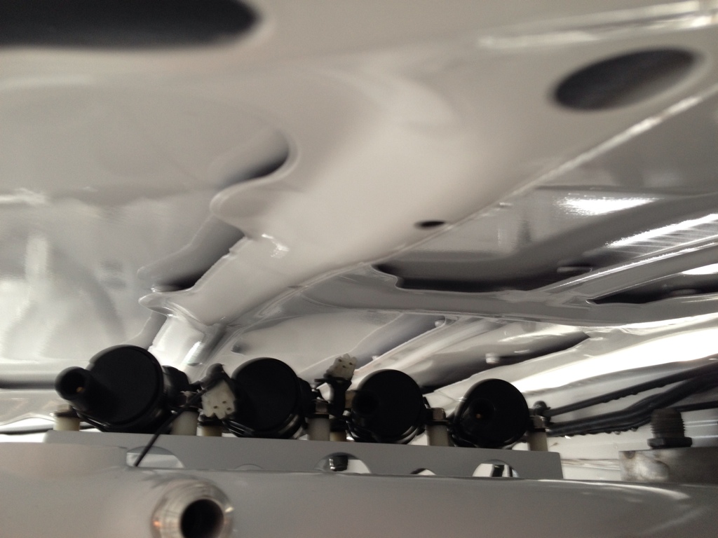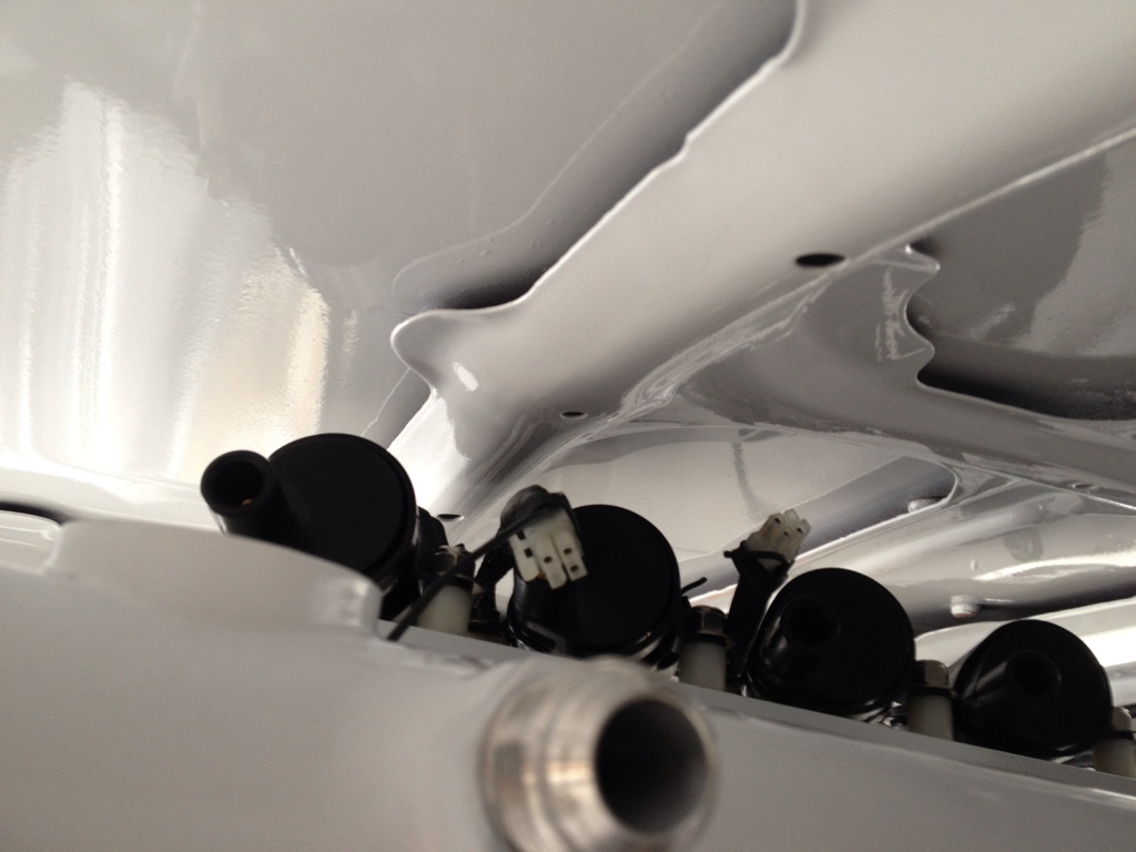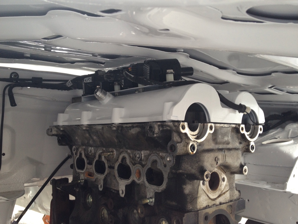 Here are some pictures of the valve cover with the coils bolted up. And of the fresh paint. Take a guess at the pieces of sheet metal that are cut out to guess what I am making...