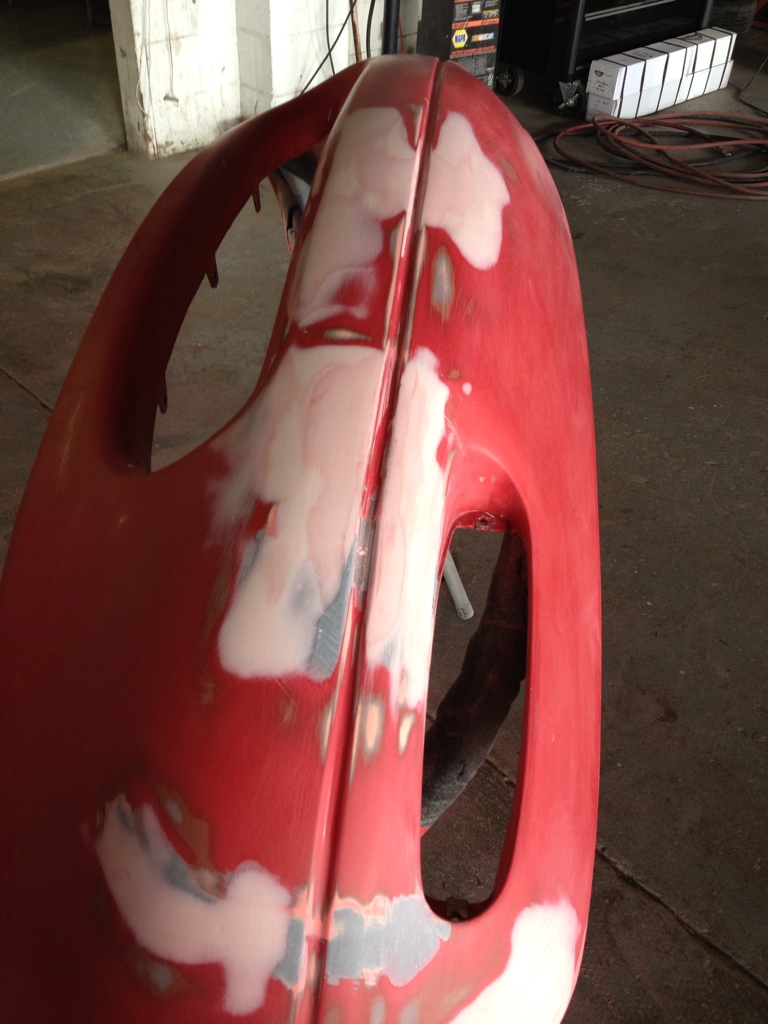A small update, I have been working on the front bumper trying to get it to look decent. I had a cherry front bumper that didn't even have the usual license plate bolt dents. When I thought of parting out the car, that was the first piece to go. I got this for free after the lady had rear ended a parked truck when she was drunk. It will never be perfect but it looks pretty good. Its primered now, almost ready for paint.
