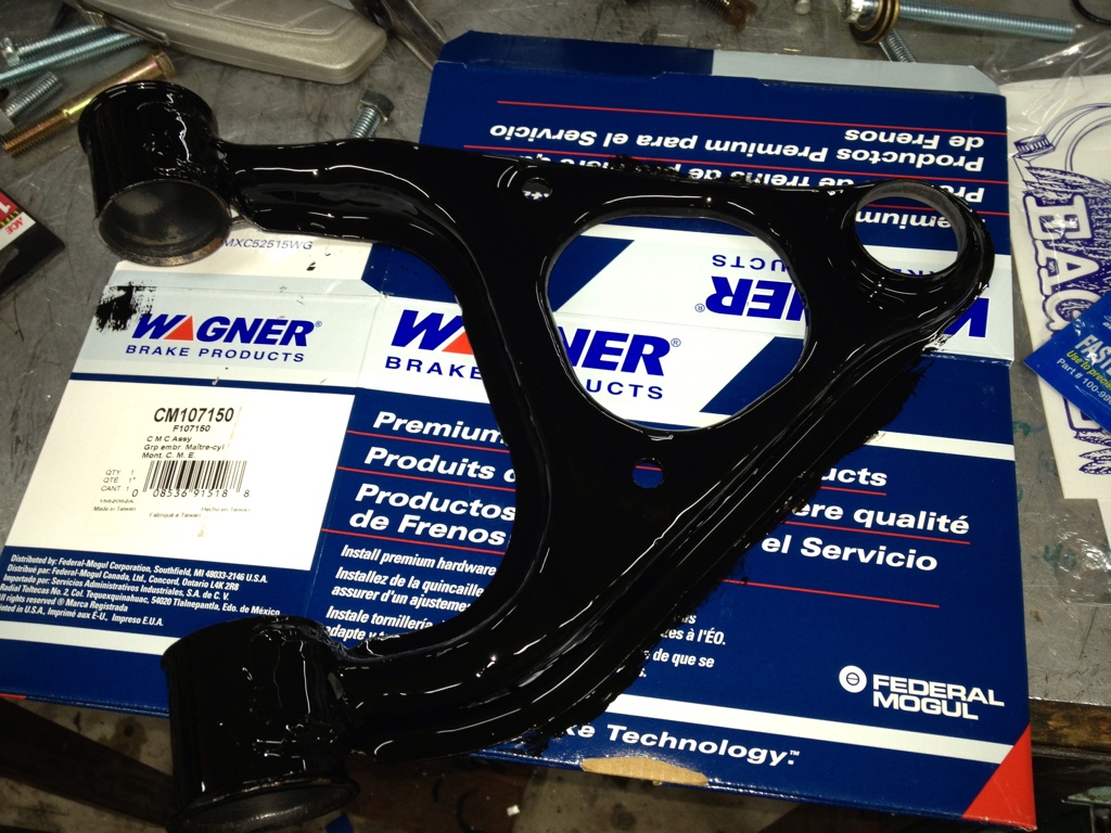 Okay, the front end is all put back together minus the spindles. I ordered some more parts: new rotors, caliper rebuild kits, pilot bearing, and axle seals.