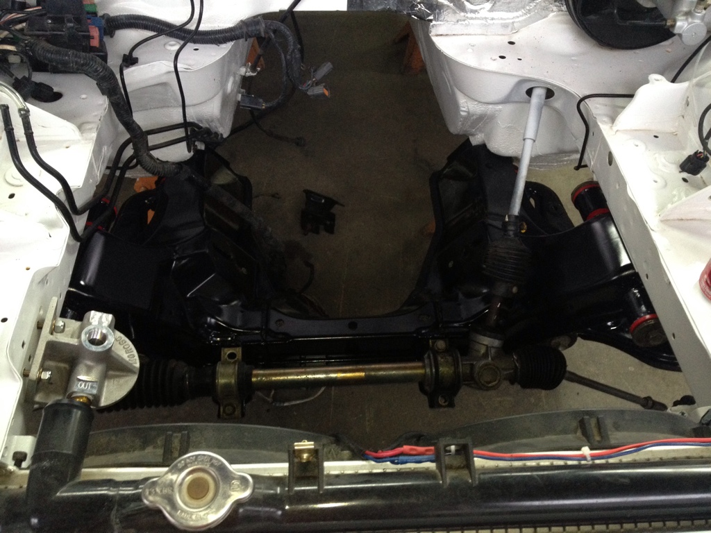 Yeah that's the only vta, it's a Moroso 1 3/8 baffled breather tube, so it is what it's designed for. But if it restricts it too much I will hog it out with my hole saw lol. I bolted the k frame back in the car and am going to set the block in there tomorrow to check clearances of the catch can and coils. If it doesn't clear I'm not going to weld it the rest of the way. Unless someone with a locust or something wants it. Tomorrow will tell all!