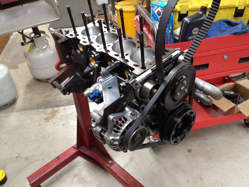 Okay here is a real update. Engine progress is going good. Bottom end is together, the head has been disassembled and awaiting valves. I have not ordered anything recently. Just been saving up to buy everything at once so I'm not buying something then waiting and buying something else. It gets tiresome. So the wait presses on. I have had bronchitis for about a week and a half now and I am just now getting over that, so last night I finished up the bottom end.