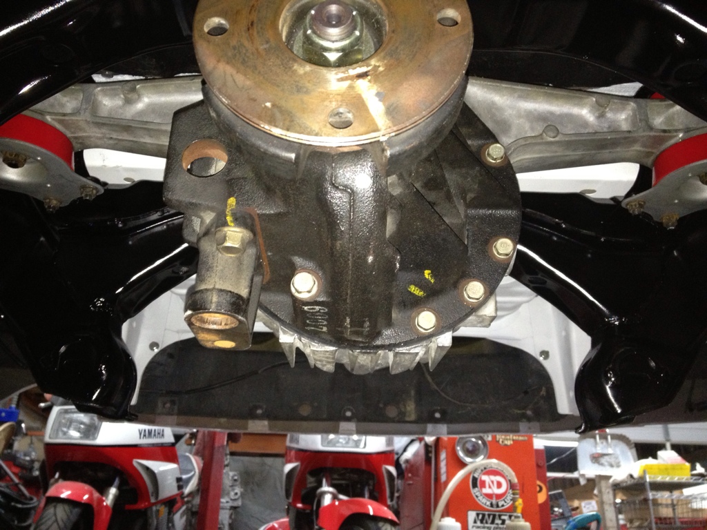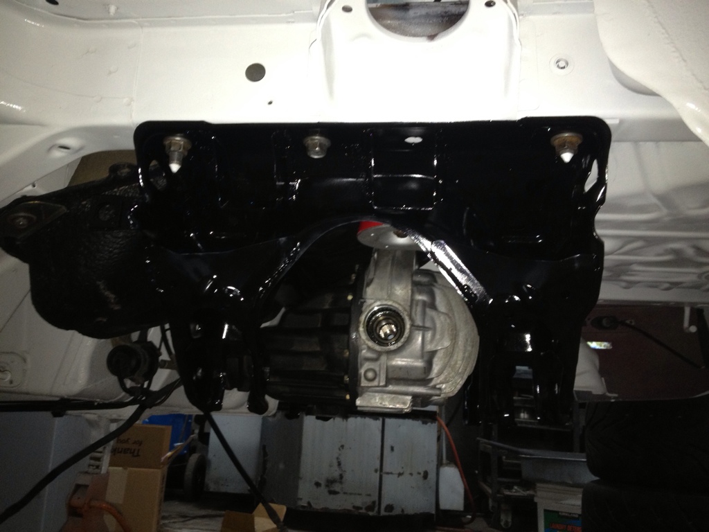 I also got the catch can mounted. Still waiting on my fittings and hoses to arrive so I can make the lines for the catch can. I also got the rear subframe torn down, glass beaded, painted and stuffed back in with the new 1.8 3.90 Torsen and one piece axles.