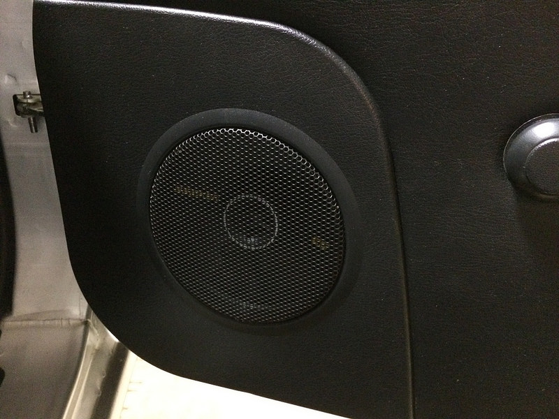 by Ryephile, on FlickrI cut out the stock door grille cross-thingie and the grille cloth. It reveals the drivers a bit but not too much.