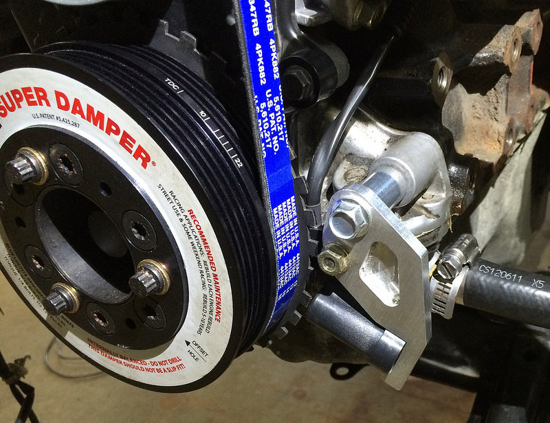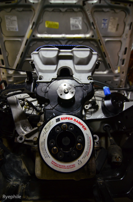 *ATI damper installed. FFS I'm fairly certain I got the magical tolerance stack-up. I heated the pulley up to 235F and ambient was 33F, and even using [the awesome] OTC 4531 bearing-style installer it took a big *** 1 1/16" wrench + 2 foot breaker bar holding the crank steady/counteracting the torque. Do not buy this damper unless you also plan on buying the right tools to install it, no exceptions.