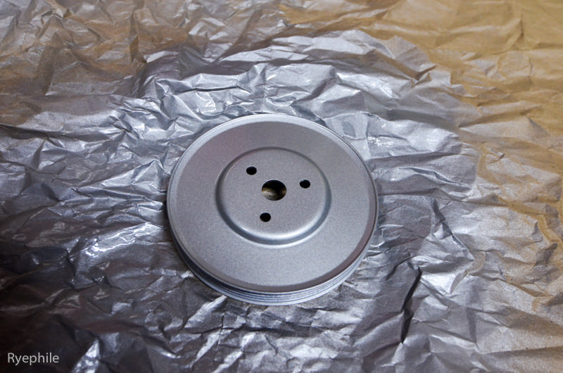 RYE_9244.jpg by Ryephile, on Flickr*I got a 4-rib water pump pulley from Planet Miata. It arrived in a pathetically beat-up condition. I wire brushed and sanded down the whole thing, then primed, painted, and clear coated it. Looks like a salable product now, ahem.