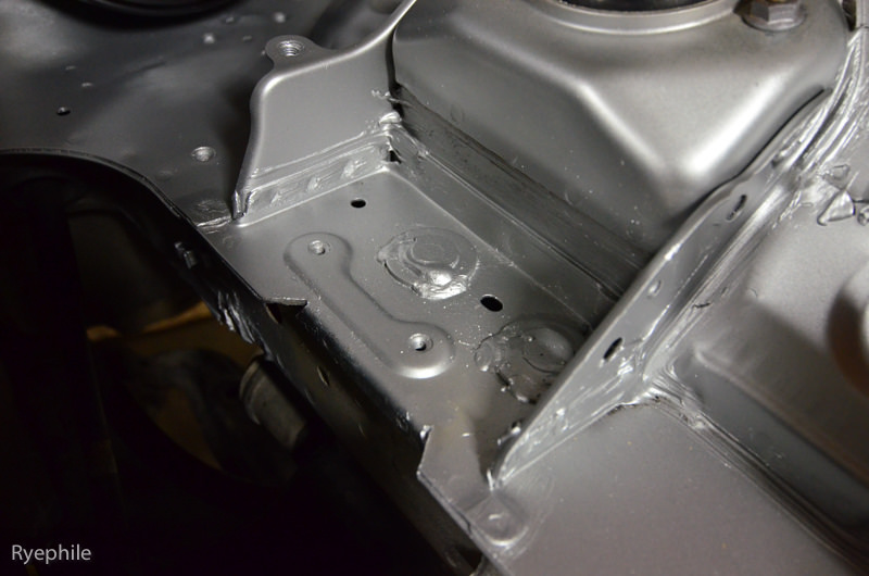 RYE_9257.jpg by Ryephile, on Flickr*Notched the frame seam weld for the FlyinMiata install. Zip-zip with the angle grinder cut-off wheel and tap-tap with the sledgehammer and paint-paint with the touch-up bottle and it's all good.