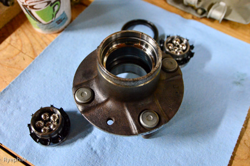 RYE_9311.jpg by Ryephile, on FlickrThis picture was while I was packin' the grease. I fully coated the *****, races, and cage, but kept the volume between the bearings clean.