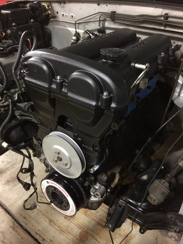 Swaintech White Lightning by Ryephile, on FlickrNext up is to clean up the engine, install new water pump, timing belt, and ATI superdamper with 36-2 tooth wheel. Then I'll work on the mess under the hydraulics and rust-convert and paint that area.