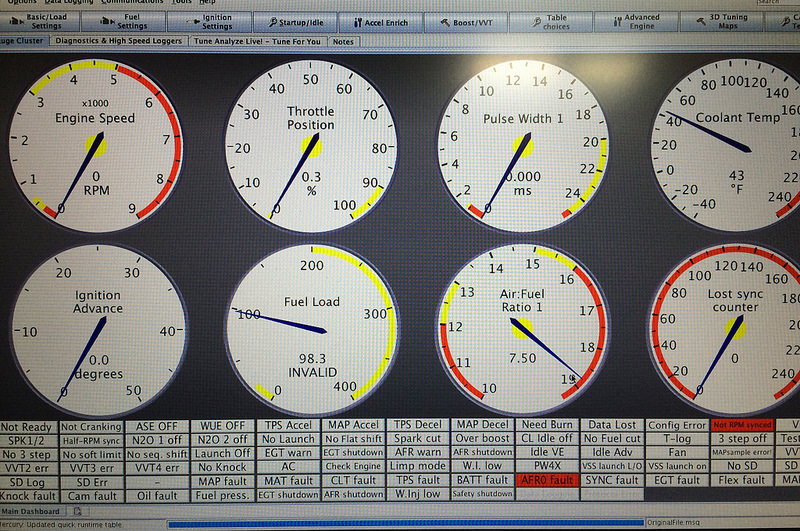First comm with the MS3! by Ryephile, on FlickrI still have to finish up quite a bit. IAT and EBC aren't wired in yet, and I still need to gut and clean-up the hack job that is the OP's Greddy turbo timer. Radiator still missing from 949.