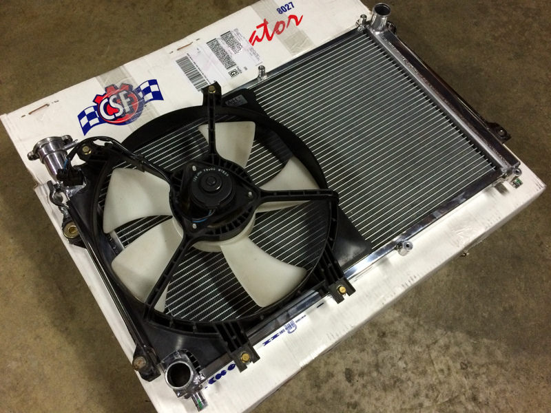 I also got my crossflow radiator from 949. Very nice packaging, very nice construction, and of course some massage to install it. It calls for OEM radiator brackets, which I don't have since I bought the car with a Koyo. So, I had the cut the Koyo brackets to make it work. Like the instructions said, I also had to do some light sledgehammering to get the radiator in, and even then, I ended up installing one of the lower retention pins after sliding the radiator into the car.