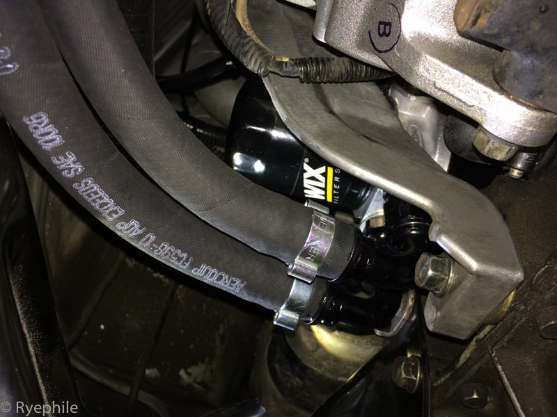 *Oil cooler lines built from Aeroquip socketless fittings and matching -10 hose. Oetiker clamps used as redundant insurance. The hose assemblies are surprisingly light.