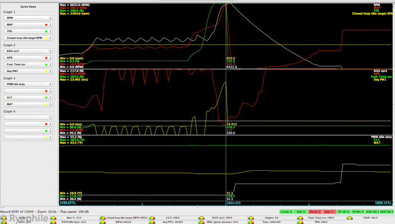 ...then it died because I think my fuel-cut over-run and idle settings are wrong. More to tune obviously. Here's those few seconds on the MegaLog viewer: