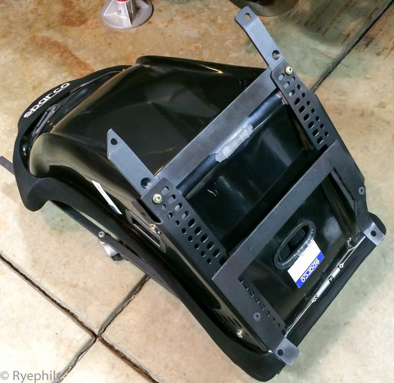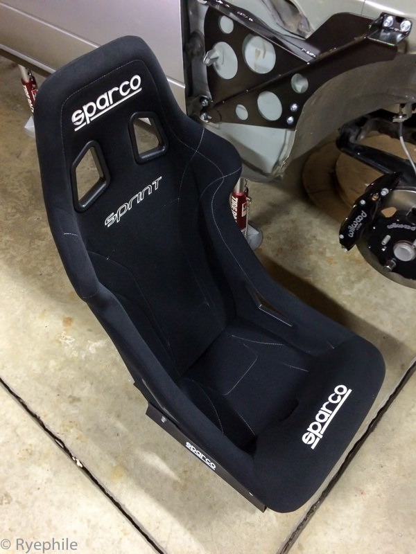 *Passenger side: Sparco Sprint, modified Sparco steel mounts, AWR rail, Schroth Profi II HANS 6-point harness [same mounting methods]