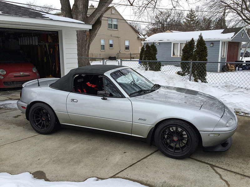 Miata's first drive by Ryephile, on FlickrOverall it was a big success, drove the car for about 20 miles total. I auto-tuned most of the <100KPa and <3.5k RPM VE cells. The coolant thermostat works great per my datalog, the coolant temp cycles around 180°. Rev's base map is heavily biased rich in the boosted cells, to the tune of 30% or so. Even so, the untuned X-Tau is a revelation for throttle response. It seems easy to get a few pounds of boost below 3k RPM, so it's looking good for a nice low RPM boost threshold. I spent very little time in boost on this first time out and my peak TPS was ~50%.