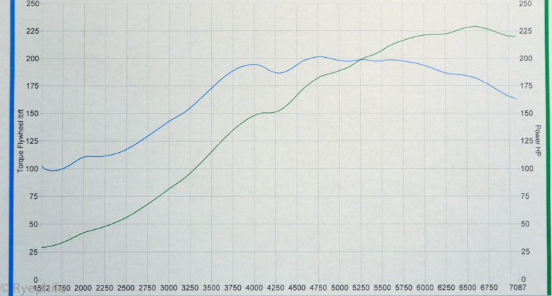 RYE_0193.jpg by Ryephile, on Flickr232 wHP and 208 LbFt at 10 psi on 93 octane. Perfect for keeping the con-rods and 5-speed in the car in functioning condition. Obviously the boost threshold isn't accurately demonstrated in the plot; on the street in 5th gear target boost occurs at 3.0k RPM. The dip at 4300 on the plot is an artifact of the current boost controller setup, not a VE dip.
