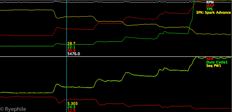 I definitely appreciate the compliment. For arghx7 it's been a fun diversion from his OEM work, and I'm thankful he's willing to share his incredible wisdom. We wrote out a specific game-plan prior to going to the dyno, so our tests were methodical and organized. The tune foundation was sorted first [fuel], then ignition timing, then injection timing, then X-Tau. All the data-logs and tune revisions are labeled so we can look back on them and understand what they're for.