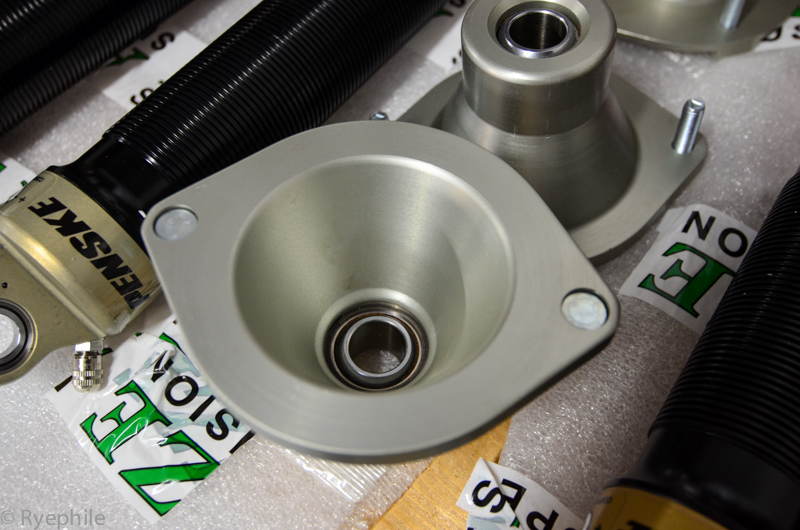 RYE_0244.jpg by Ryephile, on FlickrThe dampers are based on the 7500 DA's but with proprietary Anze valves and valving. Stroke and positioning is to my spec. Total stroke is more than sufficient for the new spring rates, which rely on Anze and V2 Motorsports's huge knowledge database. Upper mounting hats are billet aluminum with serviceable spherical bearings.