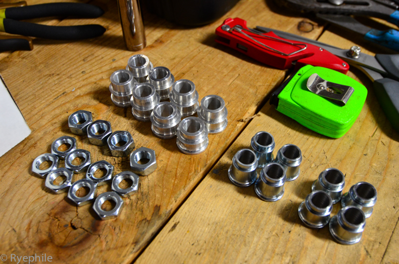 *ES poly diff bushings, the hard way. Pressing out the stock bushings fractured the housing, so I now have a very pretty brand new diff housing in the car.