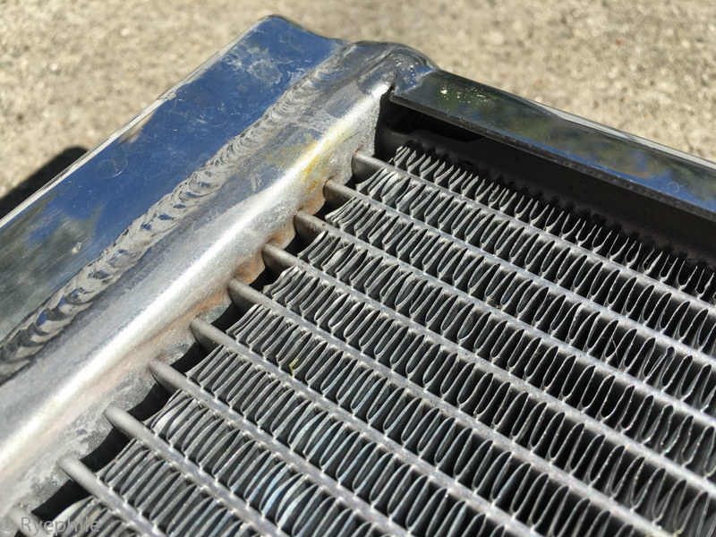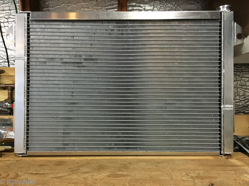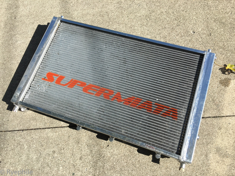 So, I put in a big-boy radiator. Springfield Dyno's twin-row triple-pass. Putting it next to the Supermiata, I'm not surprised the latter couldn't handle the job. It's proper.