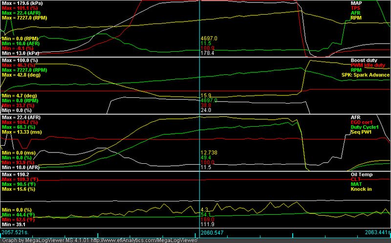 In better news, with Over Run Fuel Cut and the SD card out of the picture, I'm pretty happy with the smoothness. Here's a quick couple second WOT screen-cap for fun, fully zoomed in on MegaLogViewer.