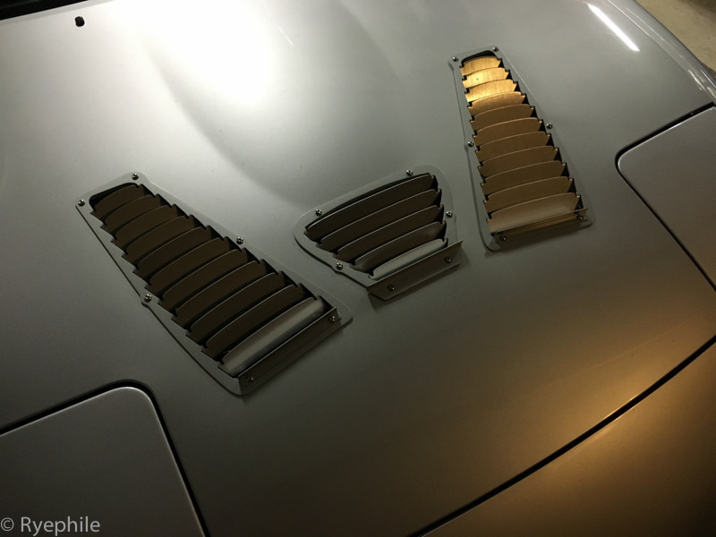 Here you go. To keep the hood prop rod socket intact, I had to chamfer a corner of one of the vent slats. When it was all complete with the vents bolted up, the overall rigidity of the hood seems similar to stock.
