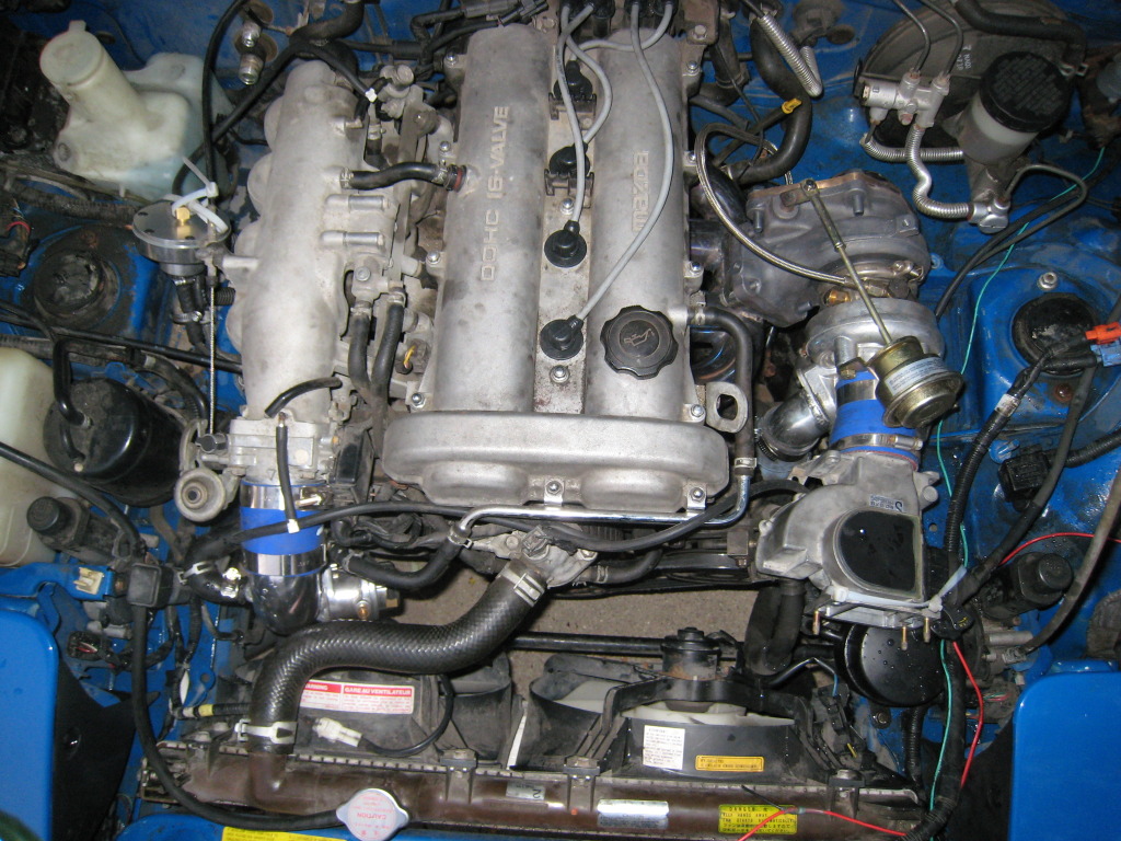 Its a 91 hardtop with a 1.6l. Mods thus far: Ebay turbo kit, fmic, obx dp and fmu, msd retarded boost box, turbonetics bov, walboro 255 pump, hard dog roll bar, azenis on stock wheels, Custom ic piping and dual exhaust from the dp back bent by me. Oh removed the 20g blown oil seals turbo and replaced with a 16g. Running 12 psi right now, she feels pretty healthy, definetly out there smokin a few cars.