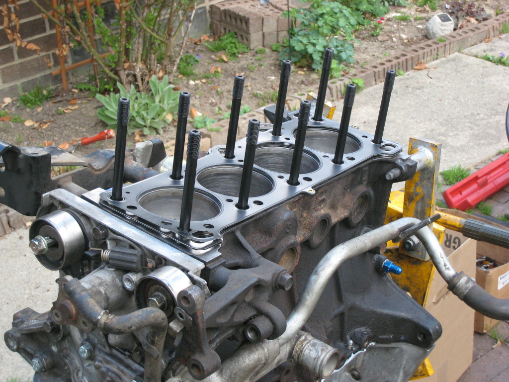 Progress since my last visit... blowd up my 130k motor runnin 12psi.. killed cyl #1. Picked up a used engine for $300. Lower end plastigaged/miced out so i let it be. I did however put a set of chromoly sealed power rings in, cometic head gasket, arp studs and replaced every single gasket/seal on the engine.