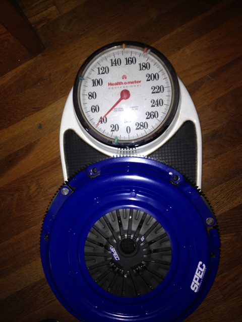 Got home and opened up my stuff, wheel bearings look like wheel bearings and the clutch looks like a clutch. Oh, except there's a chip in the clutch plate surface. Sent spec an email to see if I should be concerned but from a quick search on the web it looks like I should just remove the fraying and then lightly sand over it to smooth it out. We'll see what they say. Other than that I though the whole clutch assembly on the scale, stock is around 53 lb if my memory serves me correctly. Scale read 41 but it's 2lb off so it should be right around 39, seeing as how the flywheel is about 14lb lighter than stock, everything seems to be alright. I was kinda hoping the spec would be a touch lighter than OEM, but I'm not gonna bitch since it wasn't advertised as that. In the future I'd like to knock some more weight off the clutch assembly but for right now a 14 lb weight loss is alright. Also, the ls7 clutch assembly that a lot of people use is 58 lb, damn that's a lot.