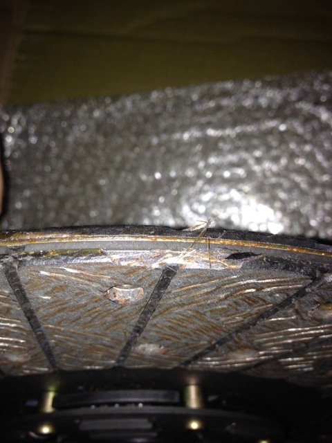 Anyway, here's some picture of the damage and then the assembly. Also, the spec clutch came with the pilot bearing (you need to convert to an ls1 style pilot bearing if you're gonna use an ls1 style clutch on a ls2/3/7) and the clutch tool which is nice cause quite a few kits I saw didn't, kind of a drag when you have to buy that stuff extra. Oh and a shim.