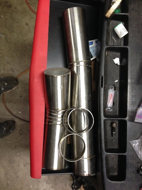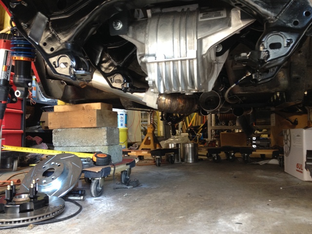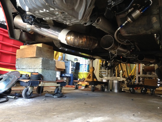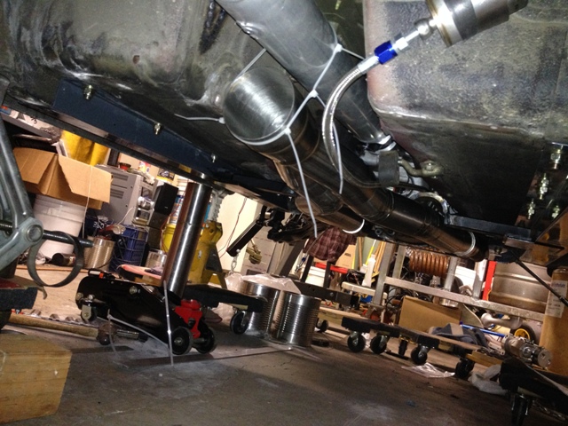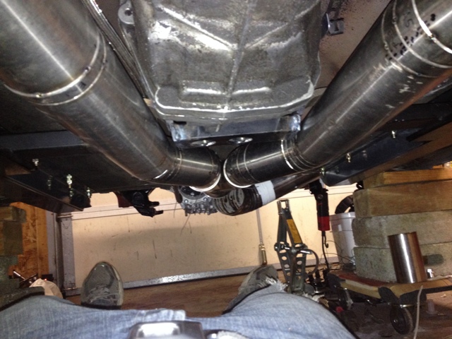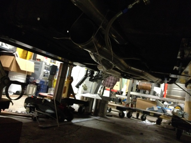 Picture duuuump. Finished the front half last night, or at least tacking it. Need to cut about half an inch off the y pipe outlet piece (the straight part, not the conical part) and then I can push it up another .25" into the trans tunnel. Other than that it fits great and sits alright as is, but I'd like a tiny bit more.