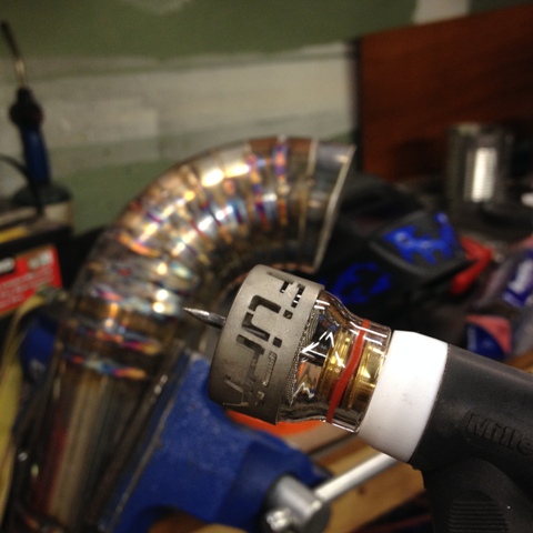 Had a good couple of days, currently taking a break from welding to grab a bite to eat. Got the exhaust all the way tacked up and started doing the welding today, going through a ton of gas welding this exhaust. Got a fupa 12 and man that thing is awesome, gobs of gas coverage and it's letting me really play around with how much heat I put into the weld, learning lots through this process. Also got my purging set up pretty dialed in, it's working really well now which is nice.