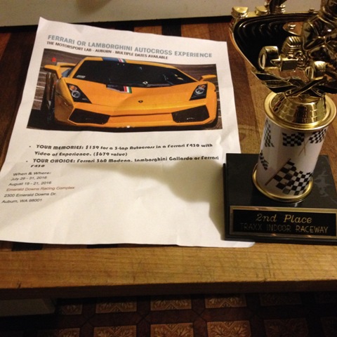 Also last night my old job was hosting a go karting night and one of my old coworkers who works in sales now got me in. It wasn't quite as much fun as last time because everyone was a lot slower so I ended up getting stuck in traffic a lot but I got the second fastest lap and won myself my first trophy as well as an autox with a Lamborghini or a Ferrari. Should be a good time.