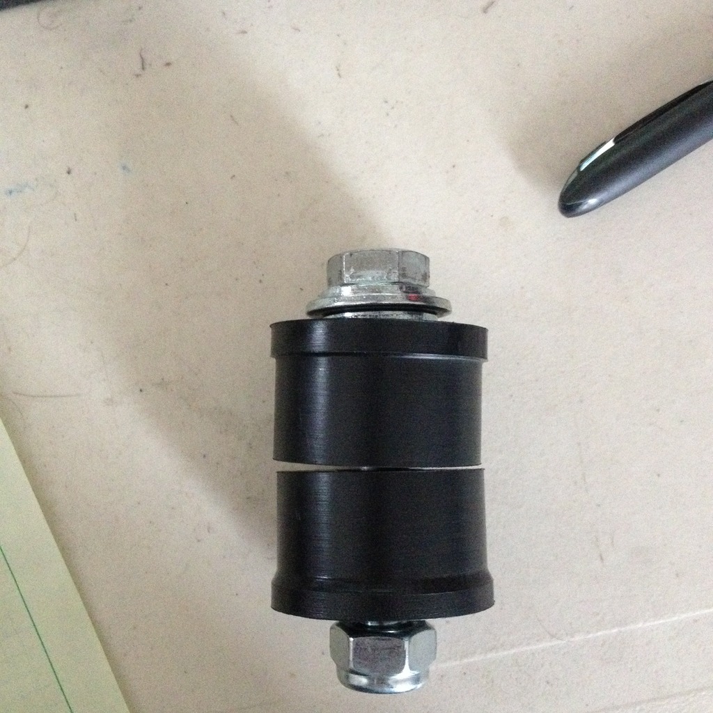 I also machined a delrin bushing for the rear diff, still need to pick up some brass rod for the middle. Also had a really bad day yesterday, I had been working on these two stainless shift ***** for the past week and I had them pretty much perfect, I polished them to a mirror finish and they fit perfectly in my hand. I spent a ton of time getting a nice ball on the end of both of them and I don't know if anyone's ever done a ball on a manual lathe without a radius tool, but it's not exactly easy. Anyway, at the last second when I was parting them off the lathe decided to eat them both at the same time and destroyed the finish. I was pretty disappointed but I guess that's life for ya. Still haven't pulled the engine cause I'm doing little **** in the engine bay like getting the lower radiator hose situation figured out.