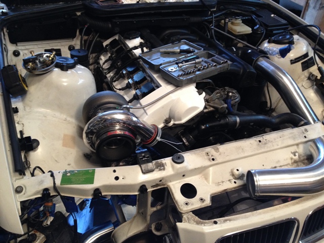 I also worked on a buddy's turbo e36 a little bit last weekend. He's paying me to do all of his cold side work and I'll be welding all the tube. (zipties were for mock up)