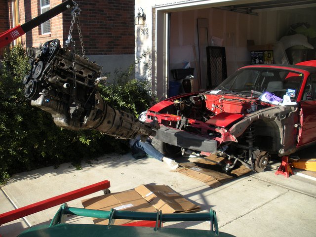 About 90% of the electrical clips broke during disassembly and the engiine bay was a really sweet two-tone red from a previous master cylinder leak and "touch up". I ended up getting a whole new wiring harness and painted the bay Rust-Oleum speckle grey to help cover the sins.