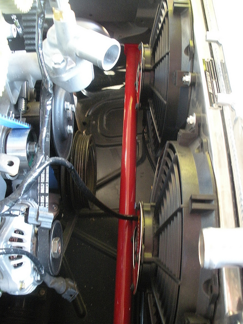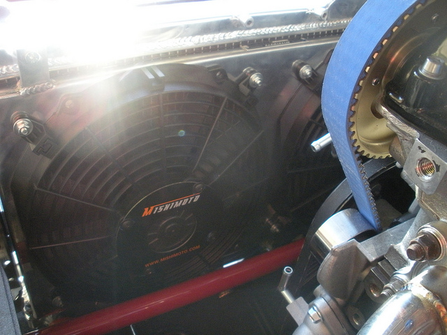 Here is a more recent shot of the engine bay after installing the Mishimoto radiator and fans as well as the Jenvey IRTBs.