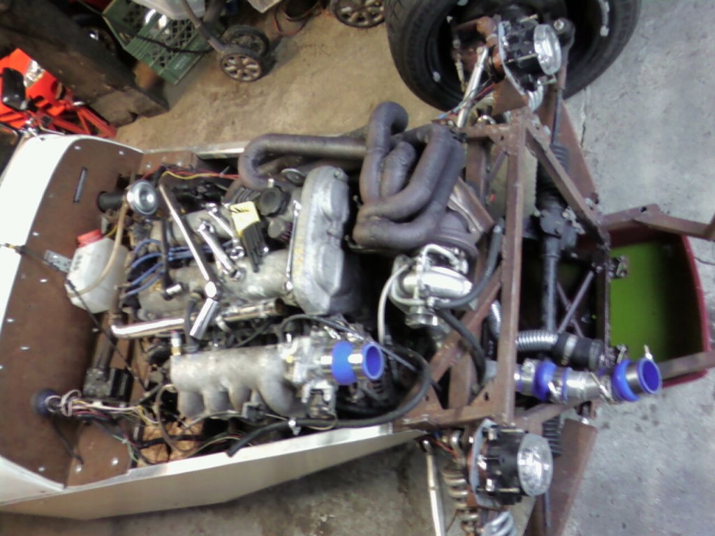 I believe I read that you posted something about this being a standard book chassis. Is it? If you had to do it again, would you go for one of the wider or longer versions? Did you weld it yourself or purchase the frame? What kind of rear are you running? Do you think an additional couple of inches in width would give you room to mount the turbo in a more conventional manner?