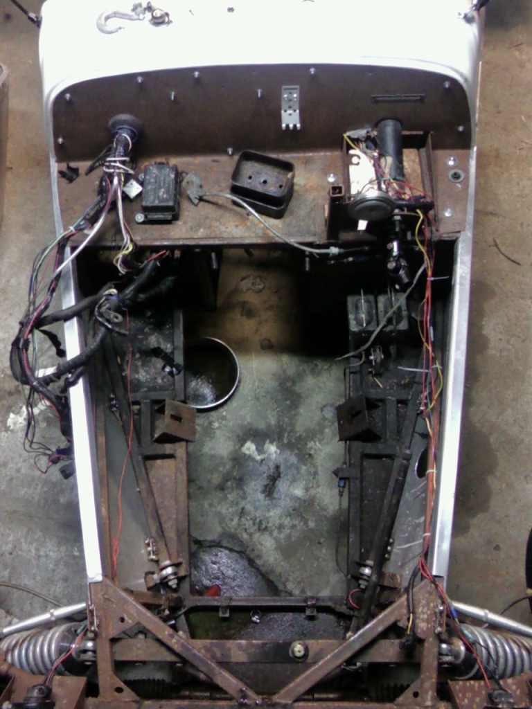 Now that the engine is out of the car, it leaves me to thinking. I don't want to paint the frame until all of the panels are finished and the mounts for them are welded on. However, with the car stripped down mostly, I am highly tempted to have it stripped bare and send it for acid dipping and painting. I can always remove paint before and touch up after welds. We'll have to see where I can have that done, and how much it will cost. I'd really like to use POR15 on the frame, but I don't know if I can afford it, and weither or not powdercoating would do about the same.