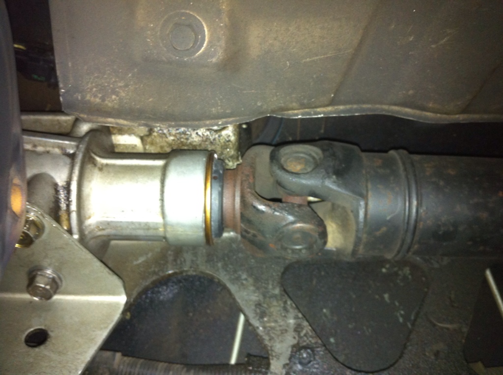 The driveshaft as seen prior to removal. I wish I could find a good picture of a Miata with driveshaft-to-transmission correlation.